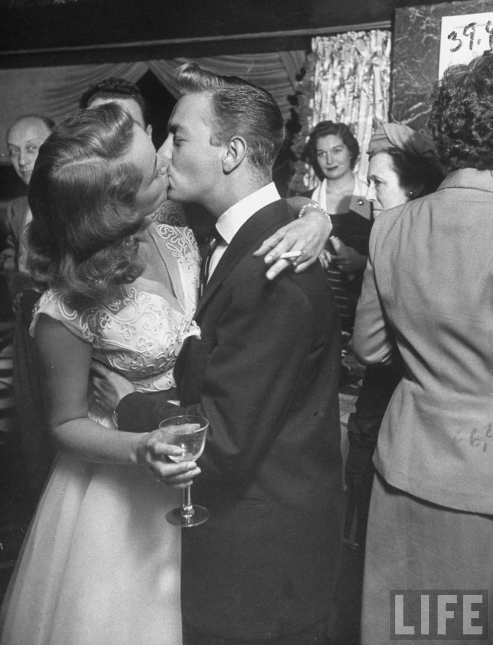 To the casual observer, this seems like a quite passionate kiss. Note the embrace and the man's hand near the woman's breast. I could be worried about this if I were that woman's husband.